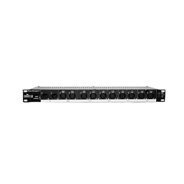 Le Data Stream 4 de Chauvet DJ est un splitter optique DMX-512 universel offrant une flexibilité améliorée grâce à ses connexions XLR 3 et 5 broches, des performances augmentées avec des sorties 3 et 5 broches pour connecter d'autres unités, une isolation électrique entre l'entrée et la sortie, le tout dans un format rackable (1U) pour une utilisation aisée et sécurisée.