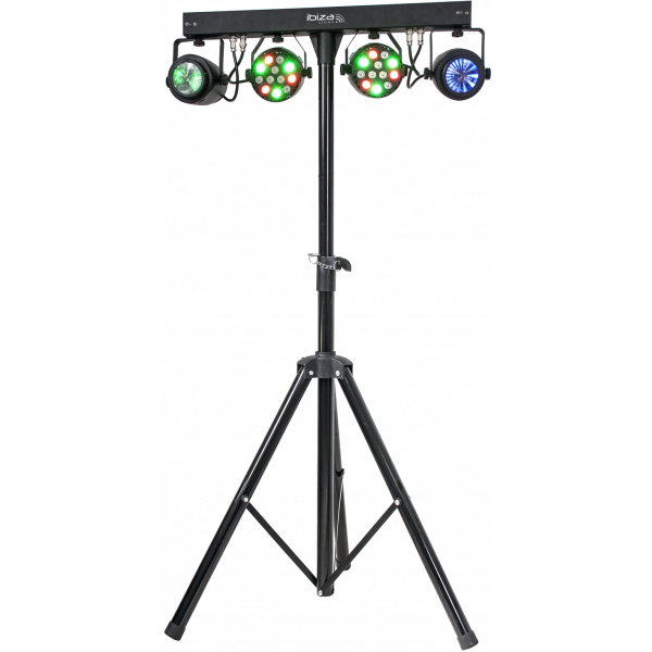 Pack éclairage Ibiza Light DJLIGHT60 composé de 2 projecteurs 12 LED RGB de 1W + 2 effets Moon Flower LED RGBWA + 1 pied d'éclairage