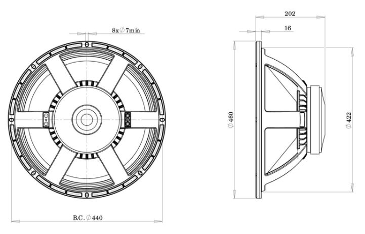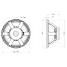 Le B&C Speakers 18PS76 est compatible avec de nombreux formats de caissons standards ou sur mesure grâce à ses dimensions précises : diamètre de montage de 422 mm, cercle de fixation de 442 mm, et profondeur après façade de 186 mm. Il s’intègre facilement dans des enceintes bass reflex, hybrides ou passe-bande.