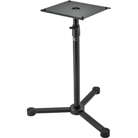 Le K&M 26722 est un support de sol fonctionnel pour moniteurs et enceintes de champ proche. La construction en acier solide assure une excellente stabilité et maintient vos enceintes en toute sécurité dans la position souhaitée. Le trépied plat avec de grands tampons en caoutchouc assure un découplage acoustique et un maintien sans oscillation. La plaque de support avec des goujons en caoutchouc autocollants mesure 280 x 320 mm. Pour une hauteur d'écoute optimale, vous pouvez choisir six niveaux entre 677 et 1132 mm. La pince fine avec crochet de sécurité est facile et confortable à utiliser. Les câbles peuvent également être acheminés à l'intérieur du tube (sans connecteur). Une capacité de charge de 35 kg est possible lorsque la charge est centrée.