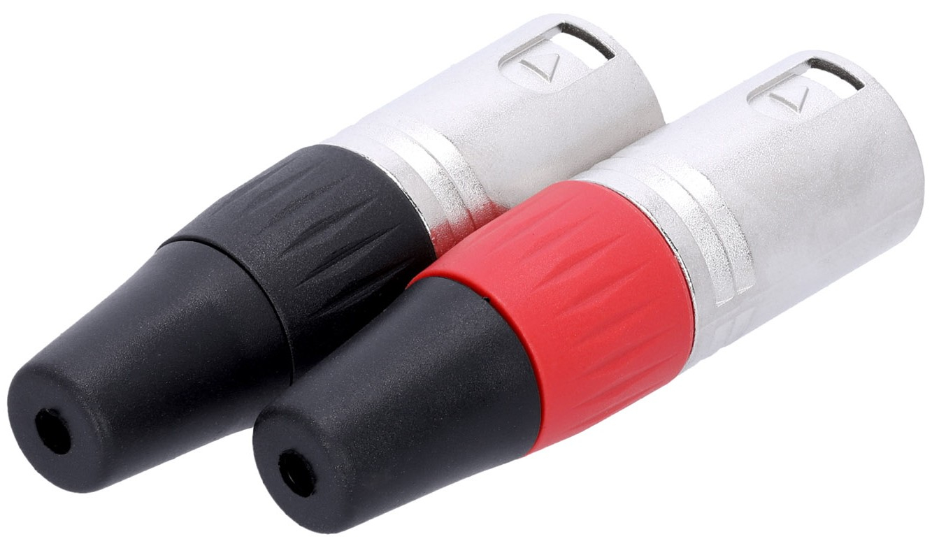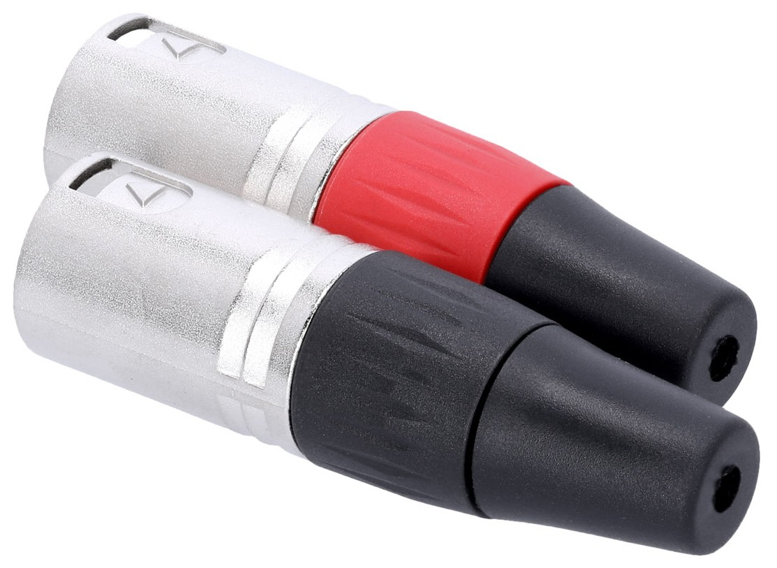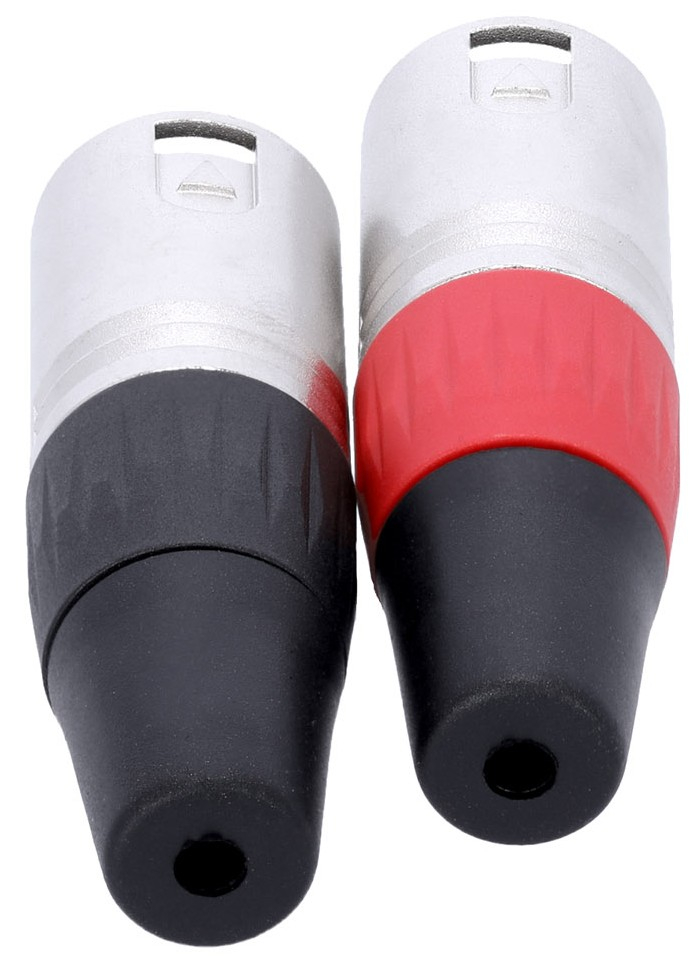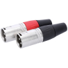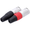 Ce produit est conçu pour l’assemblage de câbles stéréo équilibrés. Le code couleur noir et rouge permet d’identifier facilement les canaux gauche et droit. Il suffit de souder les conducteurs aux contacts prévus, en respectant le schéma XLR standard à 3 pôles, puis d’insérer un câble de 5 à 7 mm de diamètre.