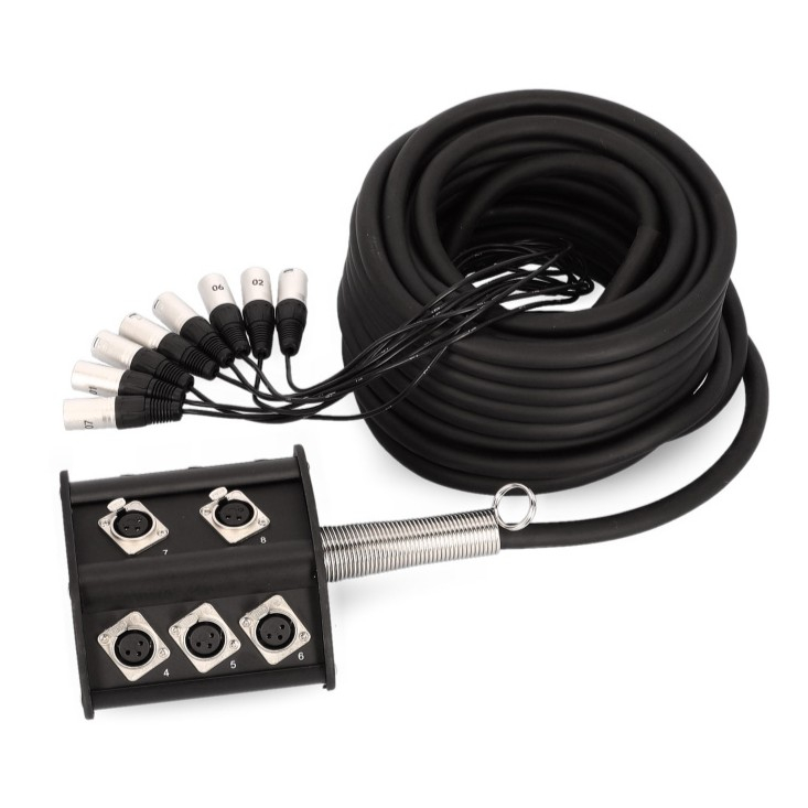 Les 8 canaux XLR du Adam Hall 3 STAR MULTICORE sont clairement numérotés, simplifiant l’organisation des connexions. Ce système intuitif évite les erreurs de câblage, cruciales pour les performances en direct et les enregistrements. Chaque connecteur est fabriqué avec soin pour une transmission audio sans faille.
