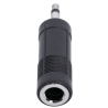 Cet adaptateur permet de convertir une connexion jack 6,35 mm femelle vers un mini-jack 3,5 mm mâle. Il transmet un signal mono asymétrique sans modification électrique, ce qui le rend compatible avec de nombreux équipements audio standards utilisés en studio ou en live.