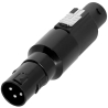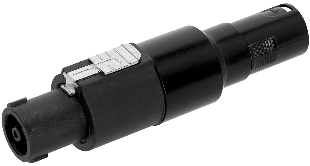 Cet adaptateur permet de connecter un signal audio XLR mâle vers un connecteur haut-parleur speakON 4 pôles. Il est utilisé pour relier une console ou un équipement de mixage à des enceintes professionnelles, sans changer les câbles. Idéal pour les environnements où la compatibilité entre connecteurs est nécessaire.