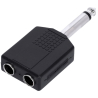 L’utilisation de cet adaptateur ne nécessite aucune configuration particulière. Il suffit de brancher les deux câbles jack 6,35 mm dans les entrées femelles, puis de connecter le mâle à l’appareil récepteur. Le sens d’utilisation est logique et la conception évite toute inversion. Aucun signal actif ni alimentation n’est requis, ce qui simplifie encore plus sa mise en œuvre.