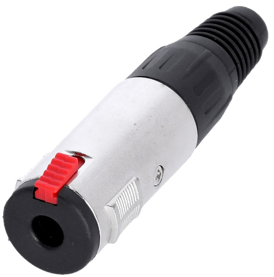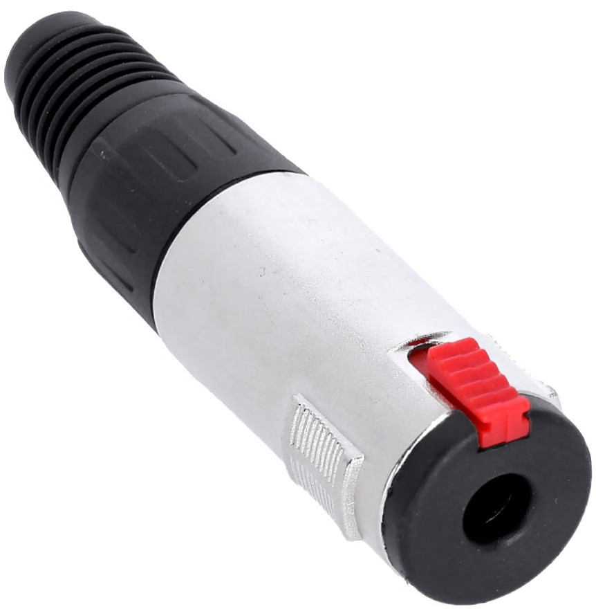 Le connecteur ADAM HALL 4 STAR C JF3 est une prise jack TRS femelle conçue pour les applications audio professionnelles. Offrant un verrouillage sécurisé, elle évite toute déconnexion accidentelle pendant l'utilisation. Compatible avec les câbles de 5 à 7 mm de diamètre, elle intègre un boîtier robuste en alliage de zinc nickelé, garantissant durabilité et fiabilité. Ses contacts plaqués argent assurent une excellente conductivité et des connexions stables par soudure. Idéal pour les configurations symétriques, ce jack stéréo 6,3 mm répond aux exigences des techniciens son, DJ, musiciens et installateurs. C’est un choix fiable pour câblages audio, racks ou scènes. Ce connecteur audio professionnel s’intègre facilement à divers équipements grâce à son format standardisé.