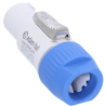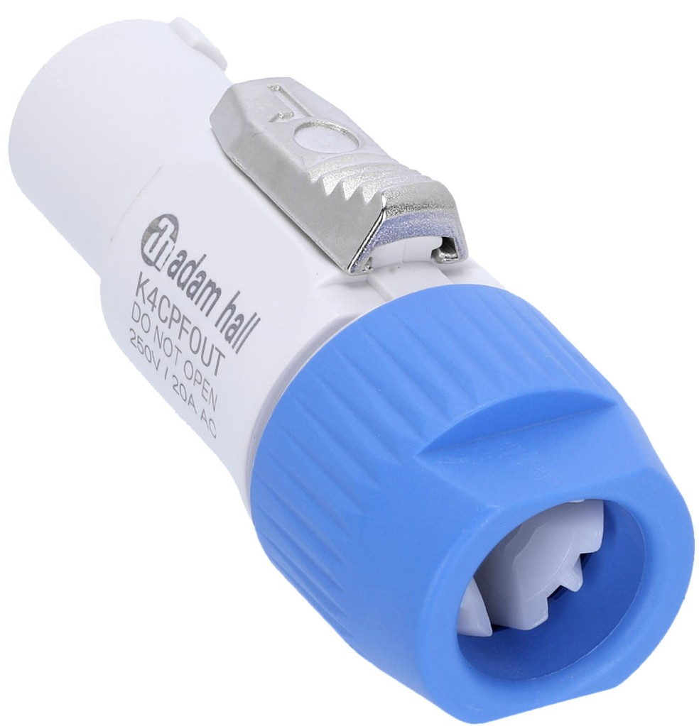 Le système de verrouillage du 4 STAR C PF OUT Adam Hall repose sur un mécanisme de sécurité empêchant toute déconnexion accidentelle. Lorsqu’il est inséré dans une prise compatible, le connecteur se fixe solidement grâce à une rotation de verrouillage, assurant ainsi la continuité de l'alimentation électrique sans risque de coupure.