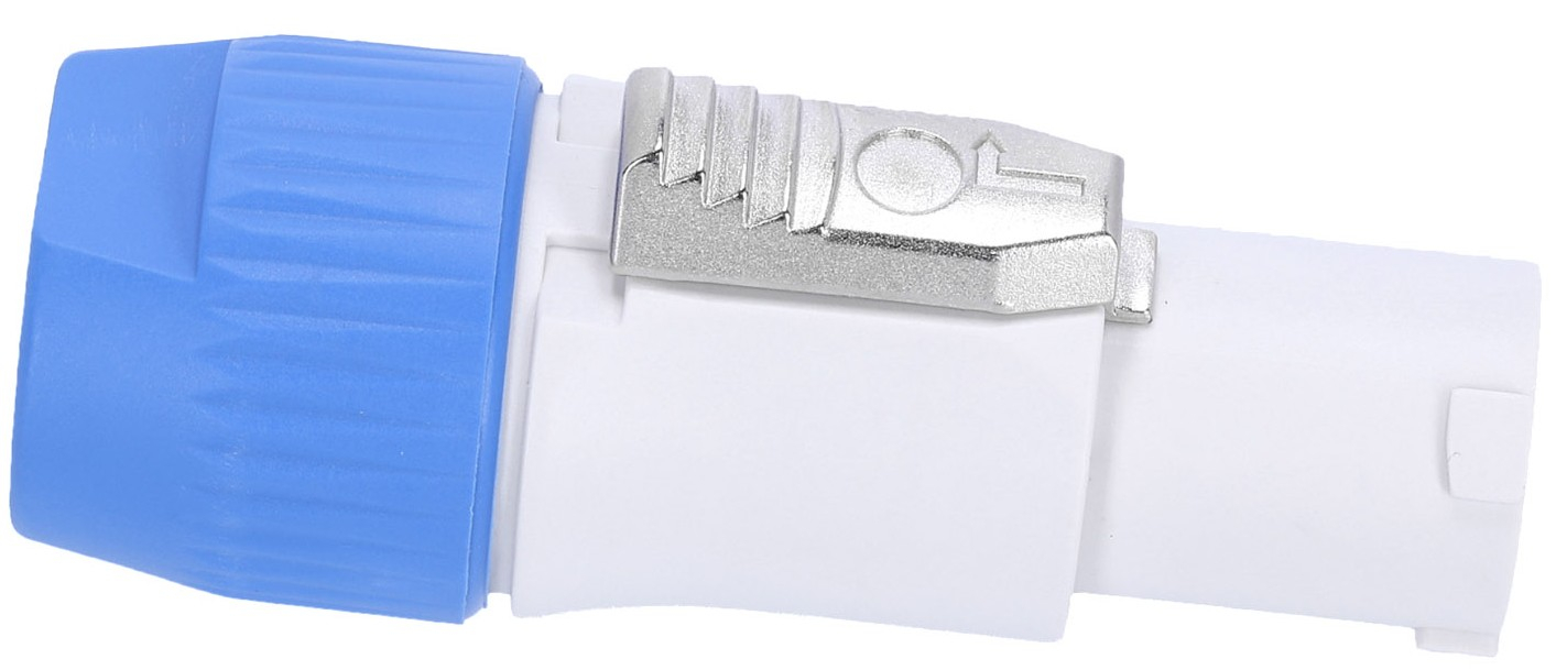 Ce connecteur est compatible avec les prises powerCON courantes, ce qui en fait un choix pratique pour les installations scéniques, audiovisuelles et industrielles. Son ergonomie facilite une manipulation rapide et sans erreur, même en conditions de faible visibilité ou d’urgence technique.