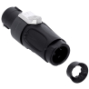 Le Adam Hall 4 STAR C SF4 BLK est un connecteur de haut-parleur standard 4 pôles femelle, idéal pour des installations audio fiables et compatibles speakON. Grâce à ses contacts à vis ou à souder, ce connecteur s’adapte à différents modes de montage. Il dispose d’un système de clic rapide et d'une décharge de traction intégrée, offrant sécurité et gain de temps. Conçu pour des câbles de 5 à 12 mm de diamètre, il est parfait pour des montages flexibles en environnement live ou studio. Fabriqué en polyamide résistant, il assure durabilité et compatibilité universelle avec les prises speakON 4 pôles. Son format compact et son poids léger facilitent l’intégration dans tout système audio.