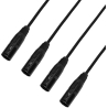 Le 4 STAR CATBOX XM3 Adam Hall est équipé de quatre connecteurs XLR 3 pôles mâles noirs et numérotés. Cette configuration assure un raccordement fiable et rapide aux équipements audio professionnels, comme les mixeurs, interfaces ou systèmes d'éclairage DMX. Grâce à la numérotation visible, le repérage des canaux devient intuitif, même dans des environnements peu lumineux ou lors de configurations complexes sur scène. Ce choix de connectique garantit une compatibilité optimale avec les standards de l’industrie audio et évite les erreurs de branchement.