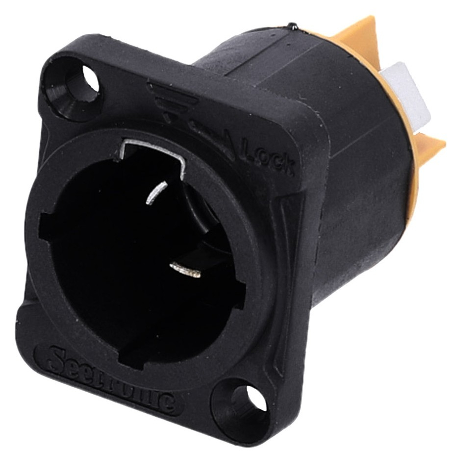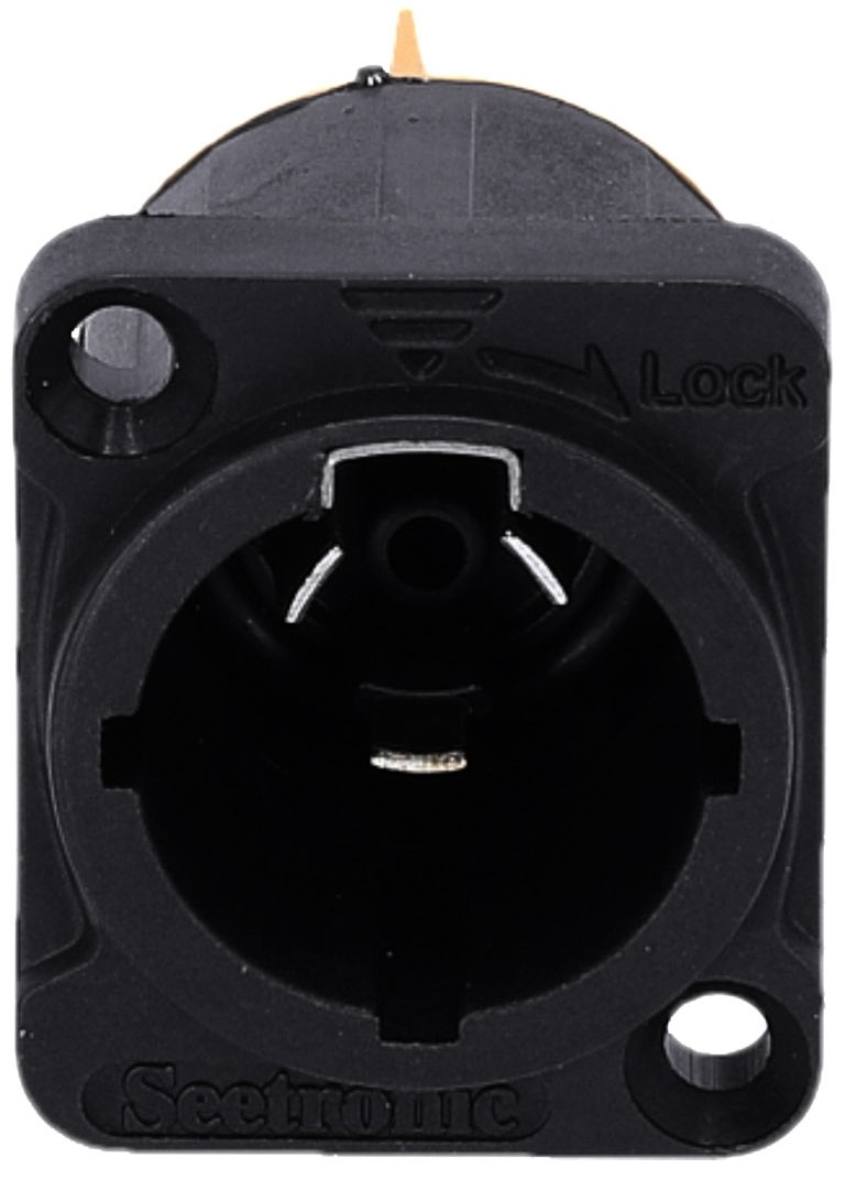 Son format à châssis facilite son intégration dans tous types de panneaux ou racks d’alimentation. La sécurité de verrouillage est renforcée, empêchant toute déconnexion accidentelle, y compris sous contrainte mécanique. Un point clé pour les techniciens son ou lumière en prestation live.