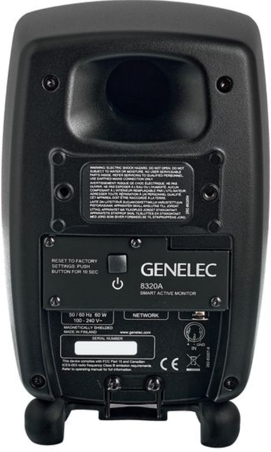 Le boîtier des enceintes Genelec 8320AMM utilise un système Bass-Reflex, permettant une reproduction étendue des basses fréquences malgré la compacité du format. Cette conception acoustique maximise la performance en fréquence sans compromis.