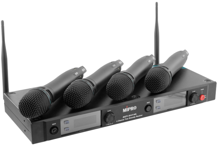 Le système MiPro ACT 2414 est équipé de quatre canaux indépendants utilisant la technologie True Diversity. Cette technologie repose sur l’utilisation de deux antennes par canal, permettant de sélectionner en temps réel le signal le plus fort et le plus stable. Cela évite efficacement les pertes de signal et améliore la qualité audio globale.