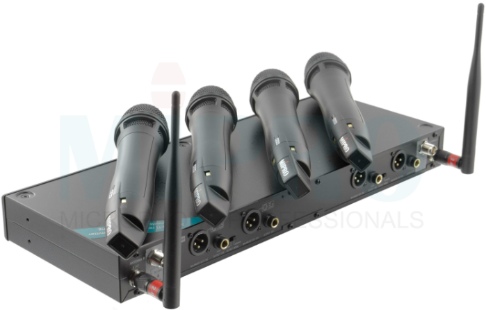 Le système MiPro ACT 2414 + 4 x ACT 24HC est un micro HF numérique destiné aux artistes, conférenciers et techniciens du son. Avec ses quatre microphones à main ACT 24HC et son récepteur quadri-canal ACT 2414A, il assure une transmission stable via la bande ISM 2,4 GHz, évitant les interférences des réseaux 4G/5G. Ce micro sans fil combine technologie True Diversity, capsules interchangeables et autonomie de 12 heures sur batterie lithium-ion. Le rack 19" avec écran OLED et connectique XLR/jack garantit une intégration fluide dans les systèmes audio professionnels. Idéal pour les scènes, événements et conférences, ce micro MiPro conjugue confort, compatibilité étendue et robustesse pour un usage intensif et flexible.
