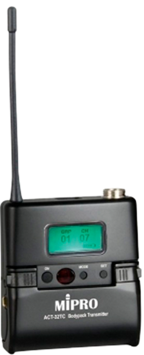 Le ACT-32TC est compatible avec une large sélection de micros lavalier et serre-tête Mipro équipés de connecteurs mini XLR 4 broches, comme les MU-53L, MU-55L, MU-13, MU-23, MU-210 ou MU-40G. Il fonctionne également avec les récepteurs MRM-70, ACT-311 et ACT-312, ce qui facilite son intégration dans un système existant.