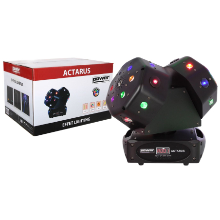 Le Power Lighting ACTARUS est un effet lyre double têtes multi-faisceaux équipée de 2 disques à rotation indépendante permettant d’envoyer tout type de faisceaux dans tous les sens. Très dynamique et rapide, le réglage de la vitesse est néanmoins réglable pour des mouvements très lents permettant des ambiances plus calmes et plus feutrées. L’ACTARUS intègre 4 effets dont la programmation a été parfaitement bien pensé : faisceau BEAM, des GOBOs, effet STROBE en lumière chaude (Led Gold) et bien sur 4 têtes LASER à faisceaux multipoints. L’ensemble de cette variété d’effets a été réuni dans un format compact mais dont l’ouverture spectaculaire est de 320°. Les lentilles en verre bombé permettent d’obtenir des faisceaux net et précis. Idéal Djs, Bar, Club, Animation, Dancing, Discothèque, Pub, Restaurant salle de spectacle, de danse, Salle des fêtes, Portique lumière.