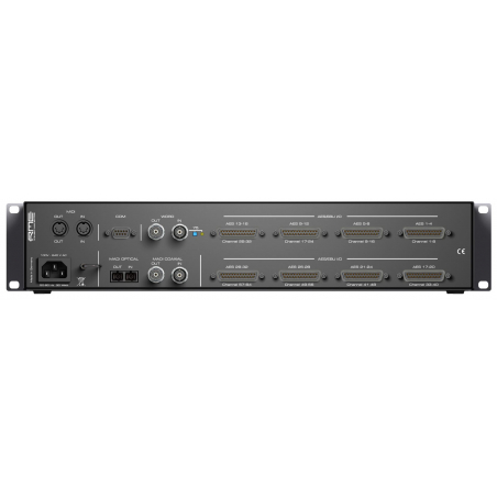-Entrées AES/EBU : 32 , 4 par connecteur Sub-D, symétrie sur transfos, haute sensibilité ( 30 dB (2.4 kHz)