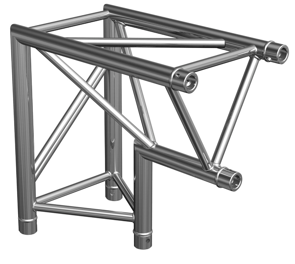 L’angle trio Contestage AG29-025 est conçu pour une utilisation polyvalente, que ce soit en jonction horizontale ou verticale avec une pointe orientée vers le bas. Cette flexibilité le rend idéal pour une large gamme d’applications, allant des structures scéniques aux installations permanentes en intérieur ou en extérieur.
