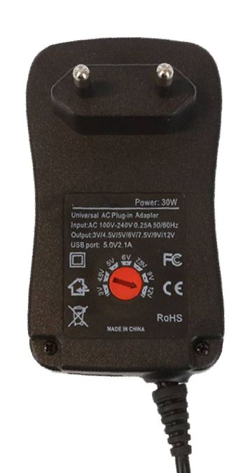 La Power Acoustics ALIM UNIVERSEL V2 est une alimentation universelle polyvalente, capable de s'adapter à tous vos besoins électroniques grâce à ses multiples options de tension réglables (3V à 12V) et sa sortie USB 5V/2.1A. Avec ses protections intégrées contre les surtensions, les surintensités et la surchauffe, cette alimentation assure la sécurité de vos appareils. Son design compact et ses multiples embouts interchangeables en font un choix idéal pour une utilisation à domicile ou en déplacement, offrant fiabilité et flexibilité en un seul appareil.