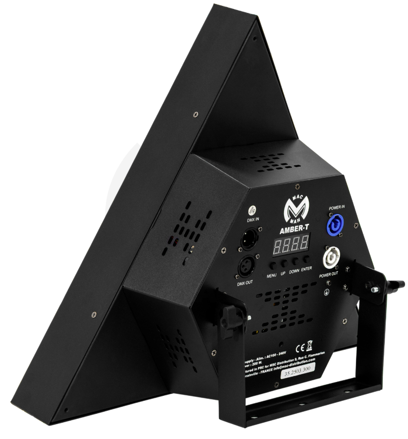 Le Mac Mah Amber-T a été pensé pour une installation rapide et fiable. Il est doté d’un écran LED intégré facilitant les réglages et les paramétrages sans contrôleur externe. L’alimentation se fait via connecteurs Powercon pour une sécurité et une robustesse accrues.
