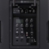 La conception du boîtier, pensée pour une utilisation quotidienne en conditions de transport et de déploiement répétés, garantit une durabilité appréciable dans les applications de sonorisation portable exigeantes. Les roulettes intégrées et la poignée télescopique permettent de déplacer l'enceinte comme un chariot sans assistance. Le puits de perche de 35 mm standard autorise un montage rapide sur tout pied d'enceinte disponible, améliorant la projection sonore et assurant une couverture horizontale de 90°. La housse de protection hydrofuge proposée en accessoire complète le dispositif pour les utilisations en extérieur par conditions météorologiques variables, tout en laissant l'accès aux commandes via le panneau avant enroulable.