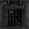 Les trappes d'accès complètent ce fonctionnement en rendant disponibles la poignée télescopique, les poignées de transport, le panneau de commande, les antennes et les connecteurs. L'utilisateur peut ainsi déplacer l'enceinte, brancher les câbles et accéder aux commandes tout en conservant la housse. Les deux poches extérieures servent à garder à portée de main les accessoires utiles, comme le câble secteur et les câbles XLR. L'intérêt pratique est direct : moins de manipulations, un usage continu de l'ANNY 12 et une protection qui accompagne réellement l'installation mobile.