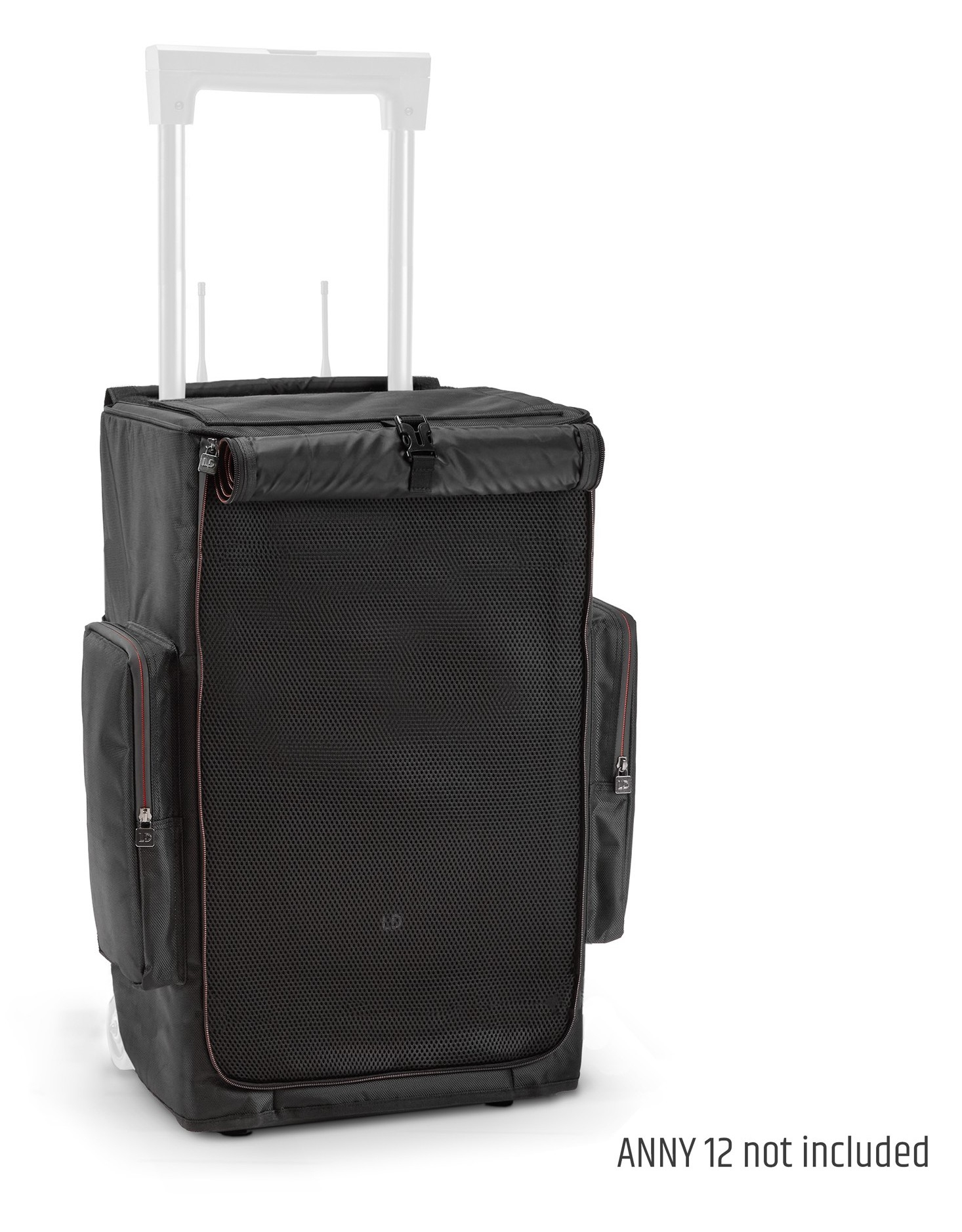 Par rapport à une housse qui obligerait à retirer la protection pour accéder à l'enceinte, l'ANNY 12 PC met en avant une ouverture frontale enroulable et plusieurs trappes d'accès. Cette conception favorise un usage plus fluide, avec accès au panneau de commande, aux antennes, aux poignées et aux connecteurs. Les deux poches extérieures ajoutent aussi un intérêt pratique pour les accessoires comme le câble secteur et les câbles XLR. Le choix repose donc sur des éléments vérifiables et utiles à l'usage, avec une conception cohérente autour de l'enceinte LD Systems ANNY 12.