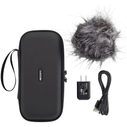 Ce pack comprend une gamme d'accessoires essentiels, dont un adaptateur secteur, un câble USB, une bonnette anti-vent à poils, et une housse de transport. Chaque composant est conçu avec une attention particulière à la qualité et à la performance, garantissant des enregistrements audio clairs et nets dans toutes les conditions.