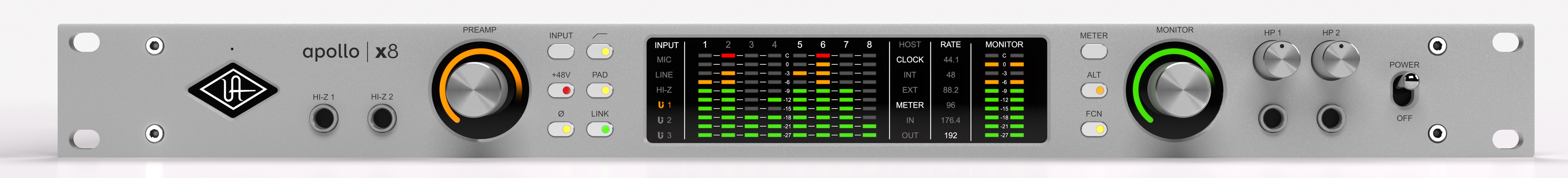 Les préamplis Unison™ intégrés à l’Apollo X8 apportent un son analogique authentique en reproduisant les caractéristiques des préamplis classiques de Neve, API et Avalon. Grâce à cette technologie, les utilisateurs peuvent enregistrer en temps réel en bénéficiant de la couleur et des nuances propres aux équipements vintage.