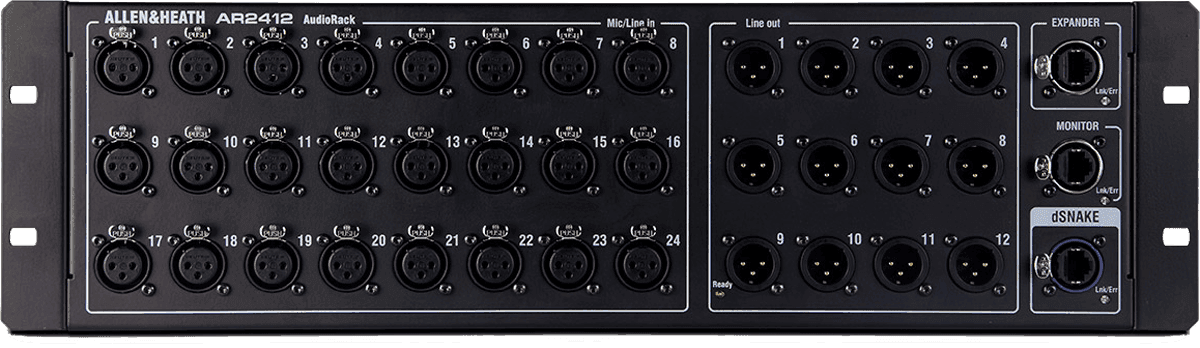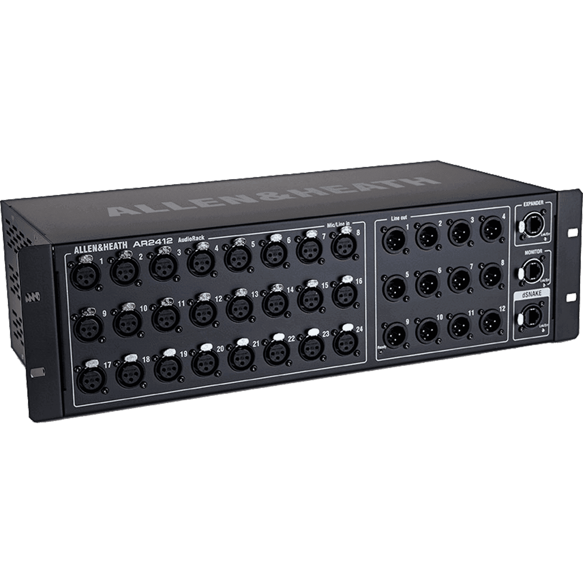 L'AR2412 confère 24 entrées XLR et 12 sorties XLR aux consoles GLD-80 ou GLD-112, et ce via un simple câble réseau Cat5 équipé de connecteurs EtherCon grâce au protocole propriétaire dSnake, tout en pouvant être déporté à 120 mètres de la console. Le dSnake offre le contrôle à distance des préamplis, et permets un rappel de l'ensemble des préamplis micro. L'AR2412 peut être connecté à un AudioRack AR84 ou un boitier de scène numérique AB168 pour établir des configurations plus importantes, en ajoutant jusqu'à 16 entrées XLR et 8 sorties XLR supplémentaires avec les systèmes GLD. Elle intègre aussi un port Monitor pour intéragir avec système Aviom Pro16.
