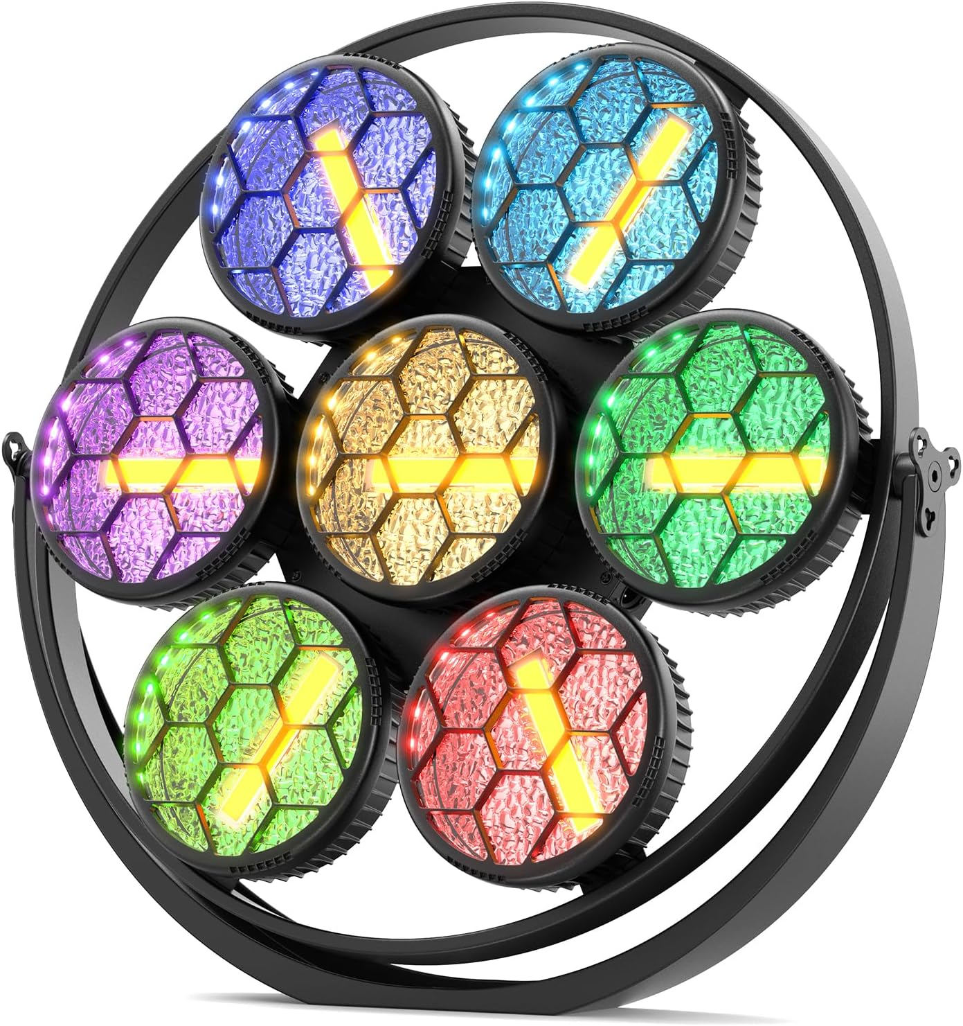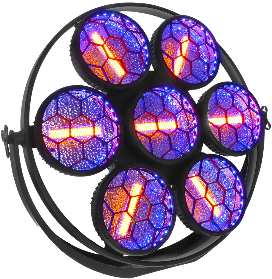 L’ARDECO 7GLD dispose de 7 LEDs COB de 60W, soit 420W de lumière principale, renforcées par 189 LEDs SMD RGB pour des effets dynamiques. Ce projecteur offre une intensité adaptée aux scènes, concerts et événements pro, garantissant visibilité et effets lumineux immersifs.