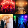 L’ARDECO 7GLD propose des effets stroboscopiques rapides, des transitions de couleurs, des animations RGB dynamiques via SMD, et une lumière blanche puissante grâce aux LEDs COB. Il permet des effets rétro et modernes selon la configuration.