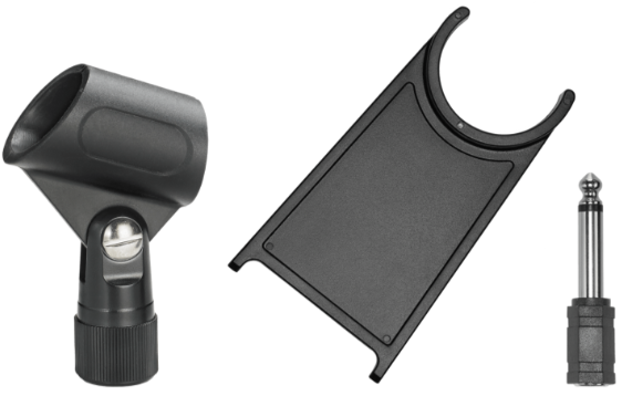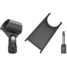 Le support fourni permet une utilisation fixe pour les sessions d’enregistrement ou les vidéoconférences. La pince de pied s’adapte à la majorité des trépieds standards, offrant une bonne flexibilité selon le contexte d’utilisation.
