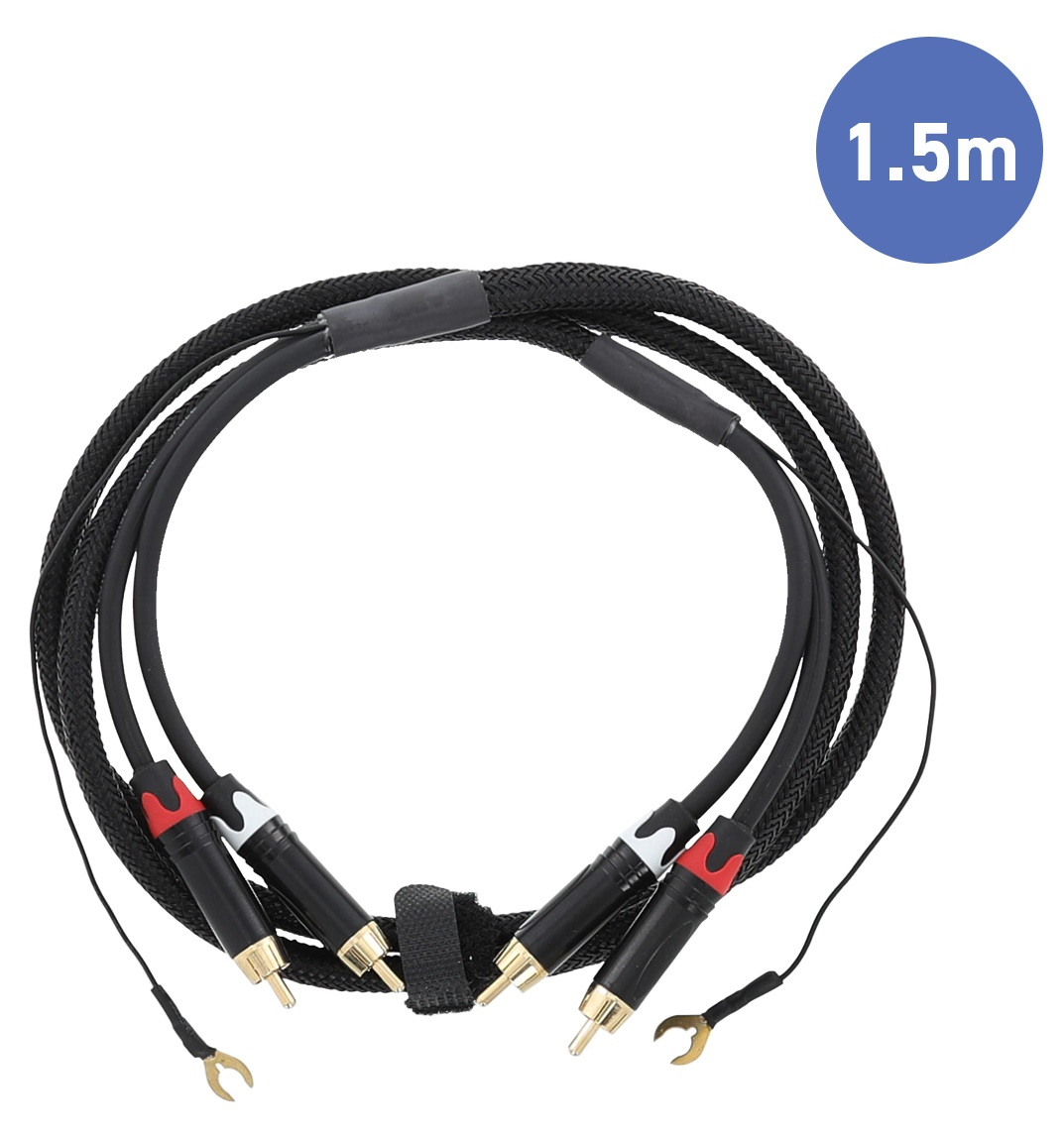 La longueur du câble est de 1,5 mètre, idéale pour connecter une platine vinyle à un amplificateur situé à proximité.