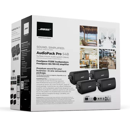 L'AudioPack Pro est une solution complète de musique de fond et de radiomessagerie, apportant à votre entreprise le son de qualité supérieure caractéristique de Bose Professional. Ce système tout-en-un est conçu pour être pratique et facile à installer, offrant une expérience audio immersive.