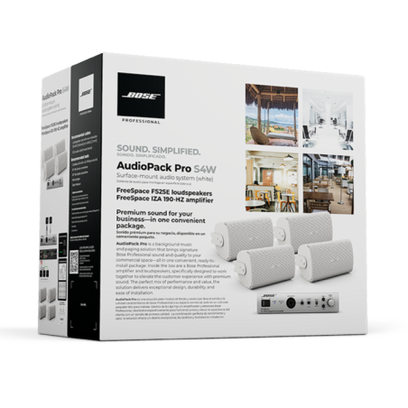 Le Bose Professional AudioPack Pro S4W est conçu pour offrir une solution de musique de fond et de radiomessagerie de haute qualité. Il apporte le son exceptionnel et la qualité caractéristique de Bose Professional dans un ensemble pratique et prêt à être installé, idéal pour diverses applications professionnelles.