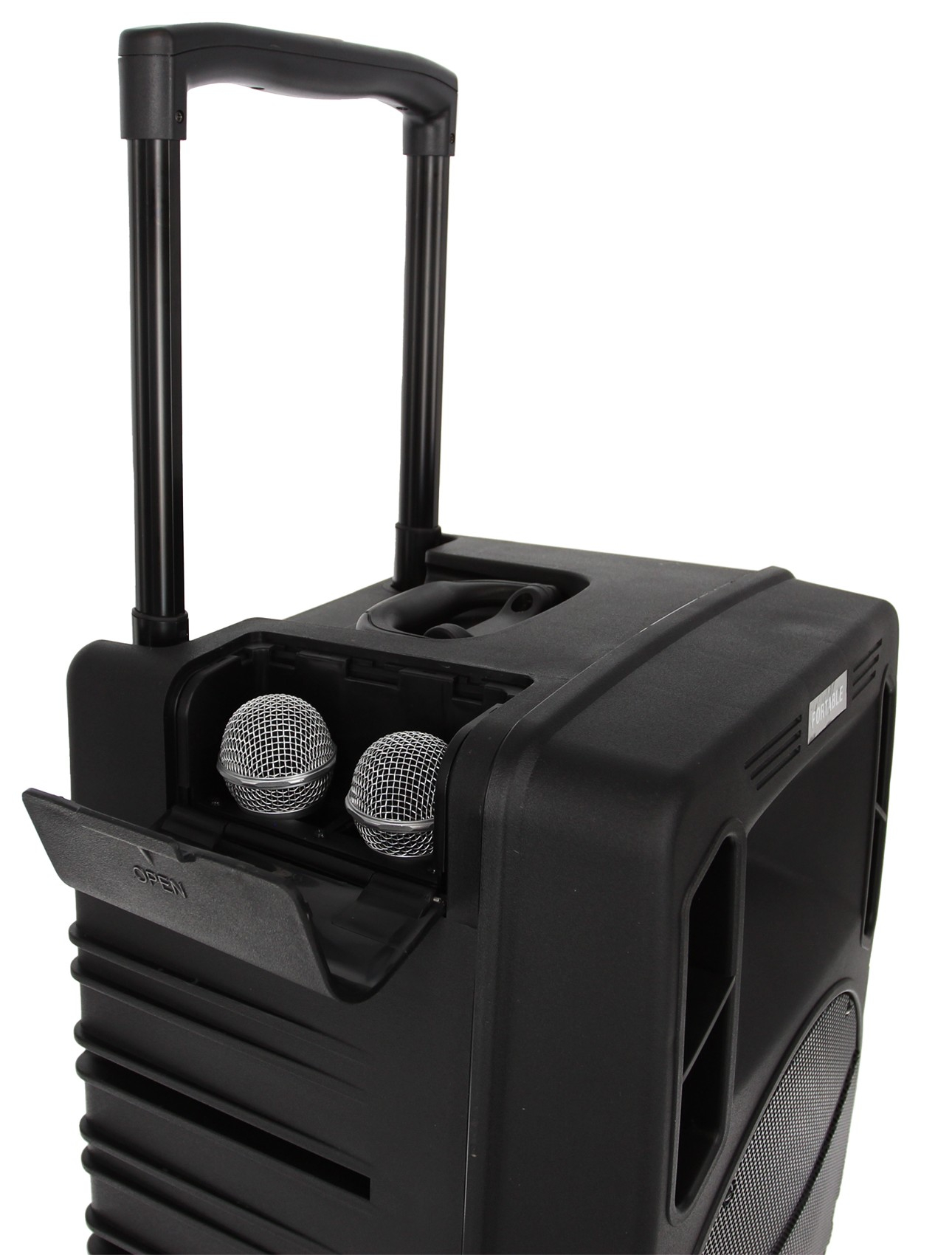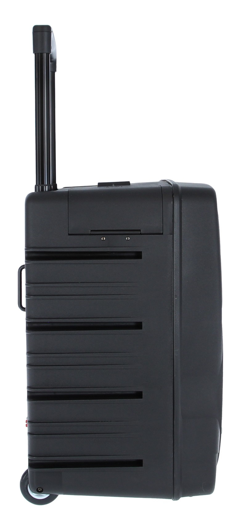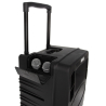 Pour la mobilité, cette sono portable Power Acoustics dispose d’un trolley rétractable et de poignées latérales, avec un châssis en finition de type ABS, présenté comme un plastique ultra résistant. Les dimensions de 696 x 416 x 405 mm et le poids de 23 kg donnent un cadre concret d’intégration dans un véhicule ou une zone de stockage. L’embase femelle 35 mm permet également un montage sur support compatible, selon le besoin d’élévation et de diffusion.