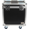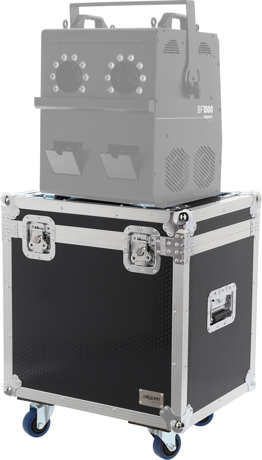 Le flight case ALGAM LIGHTING BF1000-FC est conçu pour sécuriser la BF1000 lors des déplacements. Sa structure en bois et son intérieur en mousse absorbent les chocs et limitent les vibrations. Les fermetures papillon maintiennent le couvercle fermé, tandis que les roulettes facilitent la manutention sur site.