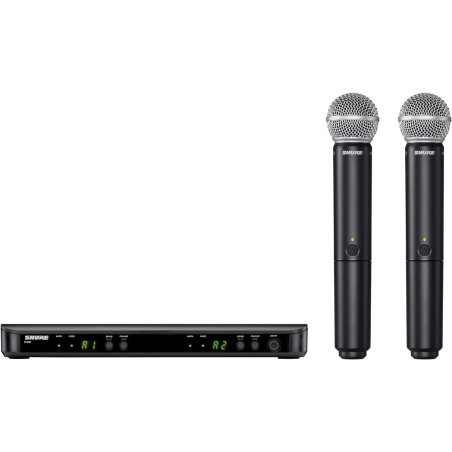 Composé d'un récepteur double BLX88E, de deux émetteurs main BLX2 équipés d'une capsule dynamique cardioïde SM58.