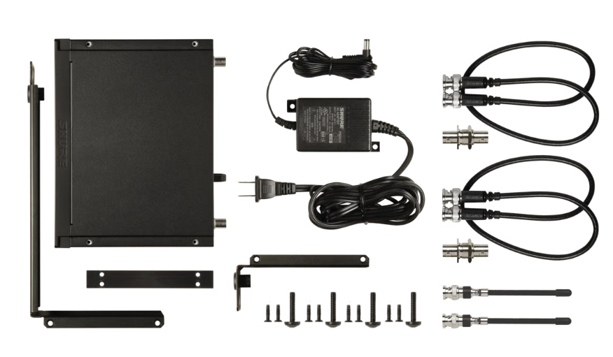 Le SHURE BLX4R H8E est livré avec un kit de montage permettant une installation en rack simple ou double. Il suffit de fixer les équerres fournies puis d’intégrer le récepteur dans une baie 19 pouces standard. Le report d’antennes en façade facilite l’accessibilité et l’optimisation de la réception. Cette configuration convient particulièrement aux installations fixes en salle ou en régie technique.