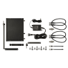 Le récepteur rackable est livré avec un kit de montage simple et double. Il suffit de fixer les équerres fournies et d’intégrer l’appareil dans une baie 19 pouces standard. Les antennes détachables peuvent être positionnées en façade via le report fourni ou déportées pour optimiser la réception RF.