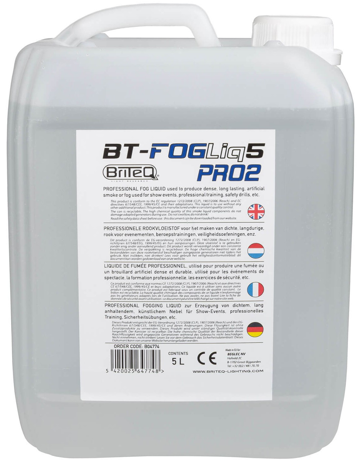 Le BT-FOGLIQ5 PRO2 s’utilise directement dans le réservoir prévu à cet effet sur une machine à fumée compatible. Il ne nécessite aucune dilution préalable. Il est important d’utiliser une machine propre afin de garantir une vaporisation homogène et une production de fumée constante lors de l’utilisation.