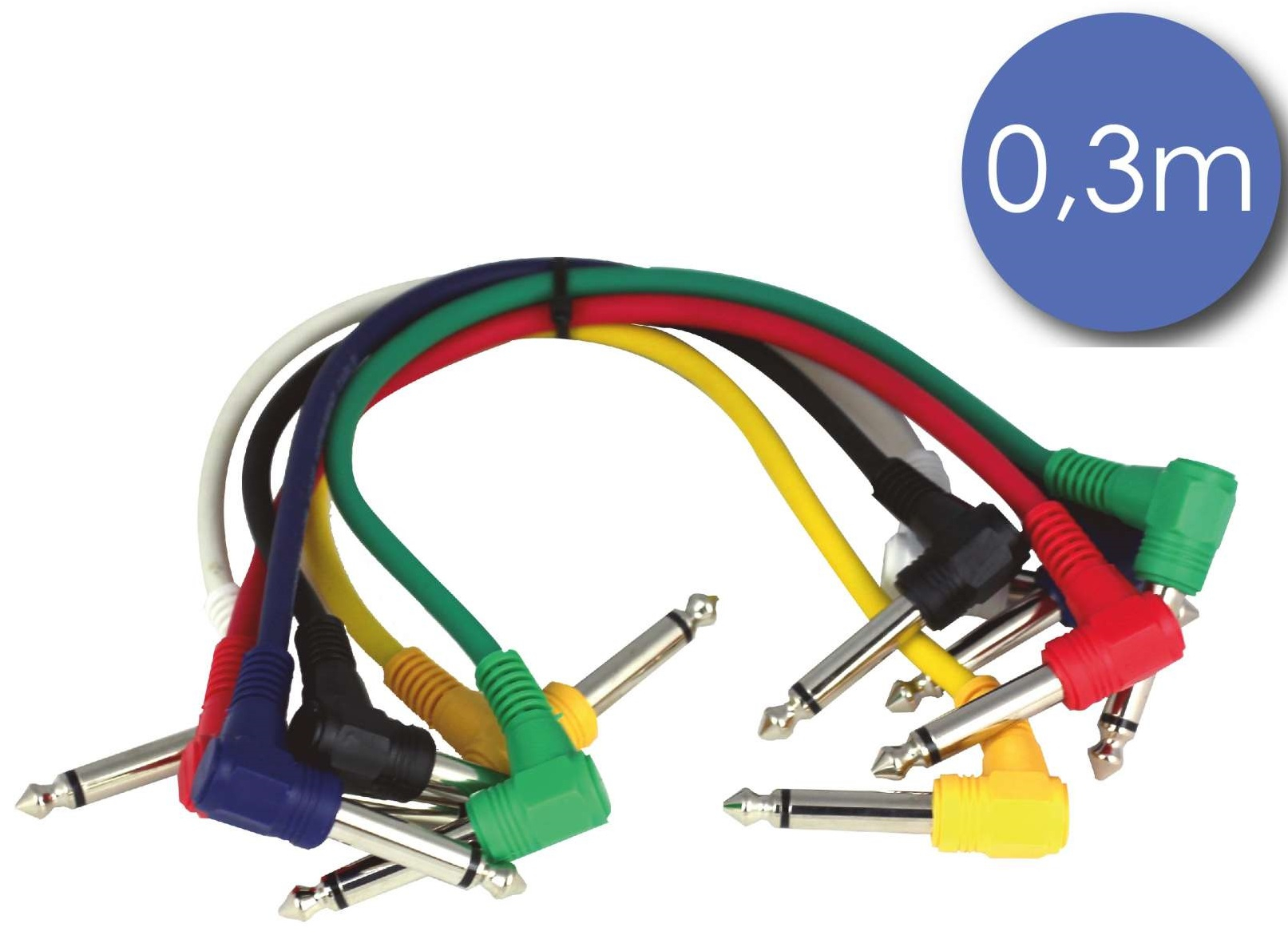 Lot de 6 Câbles Patch coudé Power Acoustics CAB 2053 Câble 0,3m - JACK COUDE MONO Mâle - JACK COUDE MONO Mâle