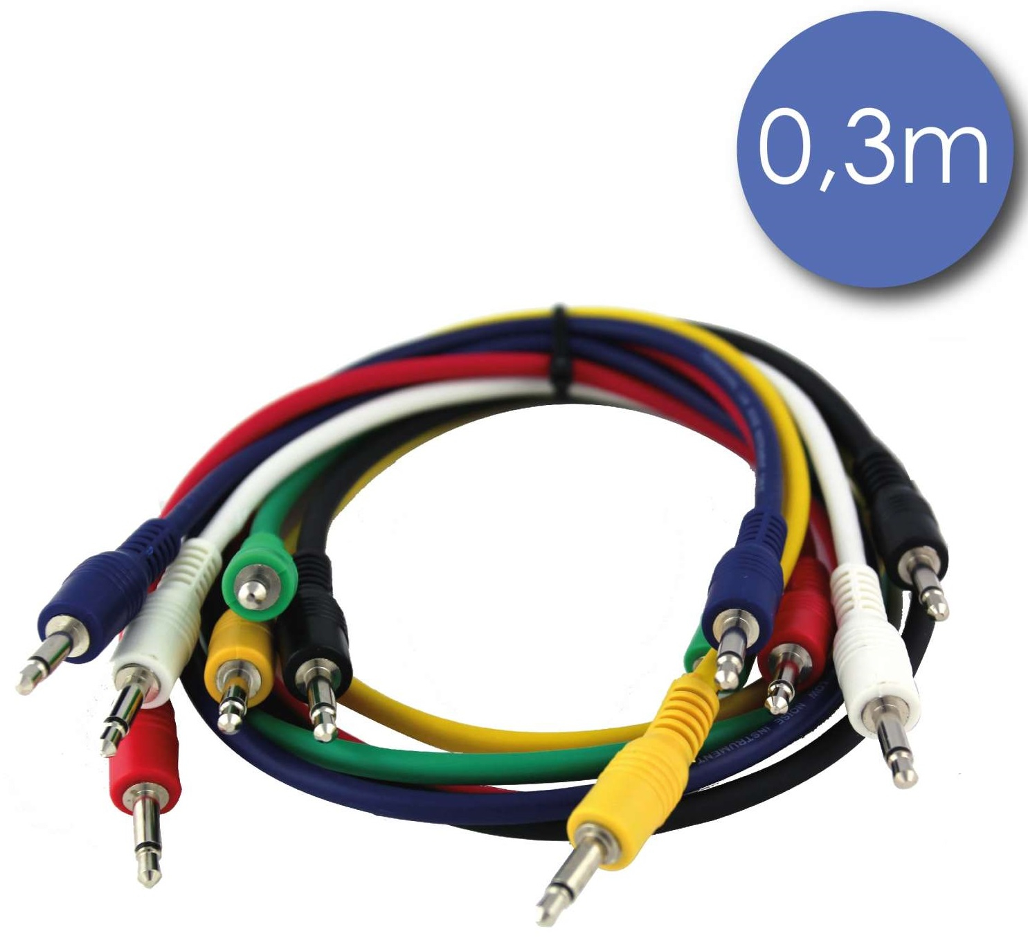 Lot de 6 câbles de patch Power Acoustics CAB2199 mini jack 3.5 mono / mini jack 3.5 mono - longueur 0.3m, repérage des câbles par code couleur