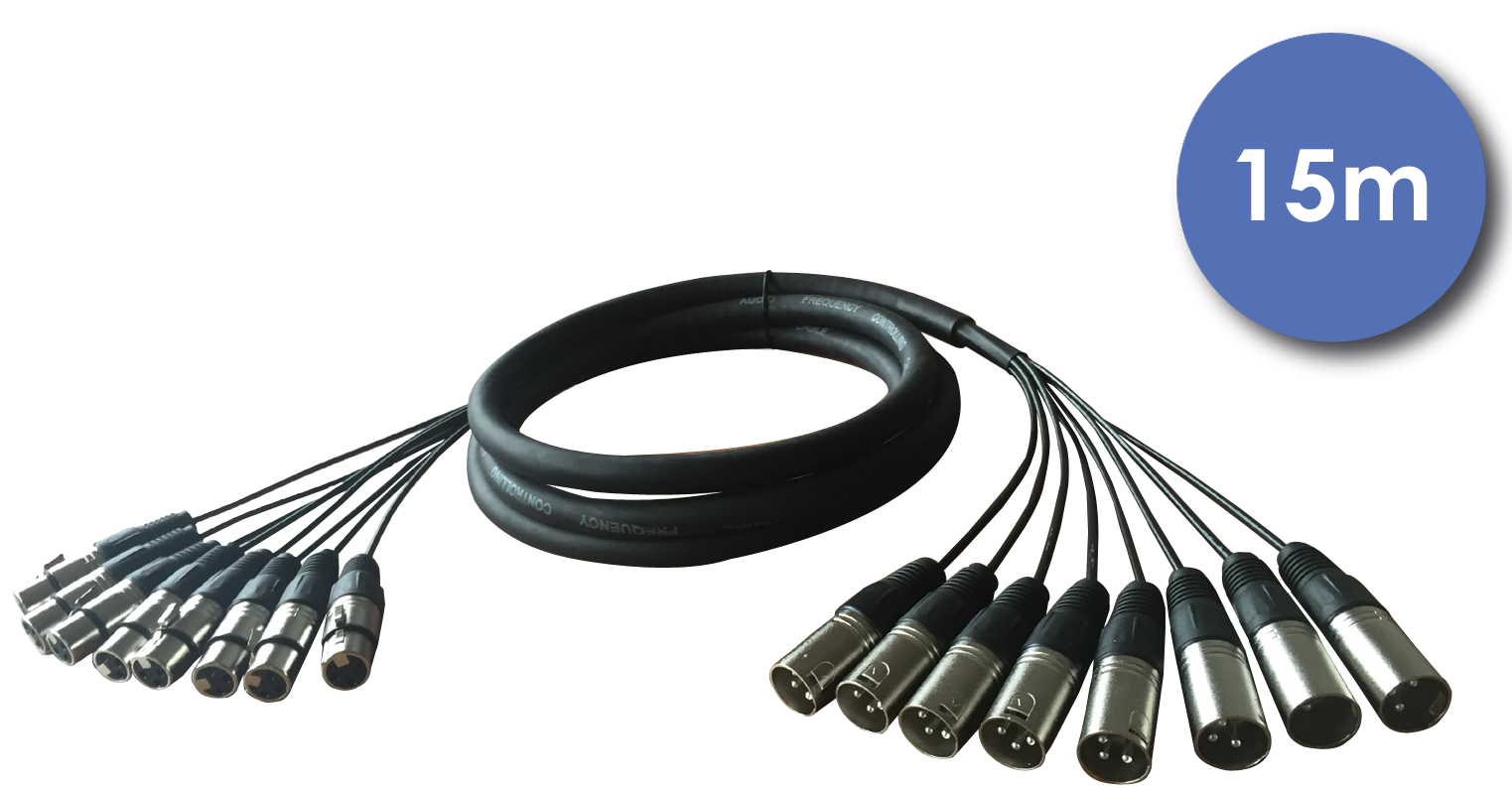 Octopaires Power Acoustics CAB 2223 - 15m - XLR 3 PIN Mâle - XLR 3 PIN Femelle.