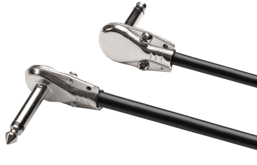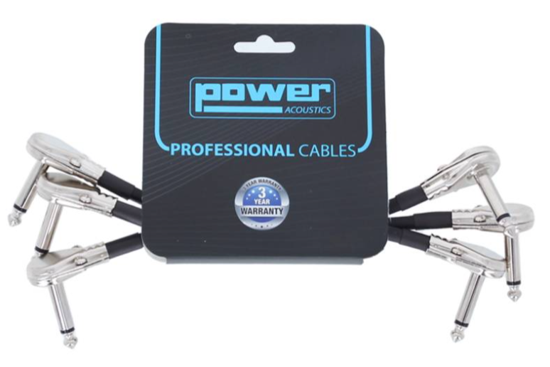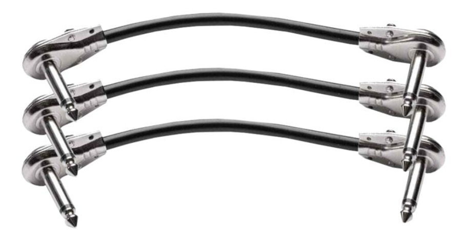 Lot de 3 câbles coudés CAB 2244 de chez Power, connecteurs plats en métal, en 15cm spécialement conçus pour raccorder des pédales de guitares.
