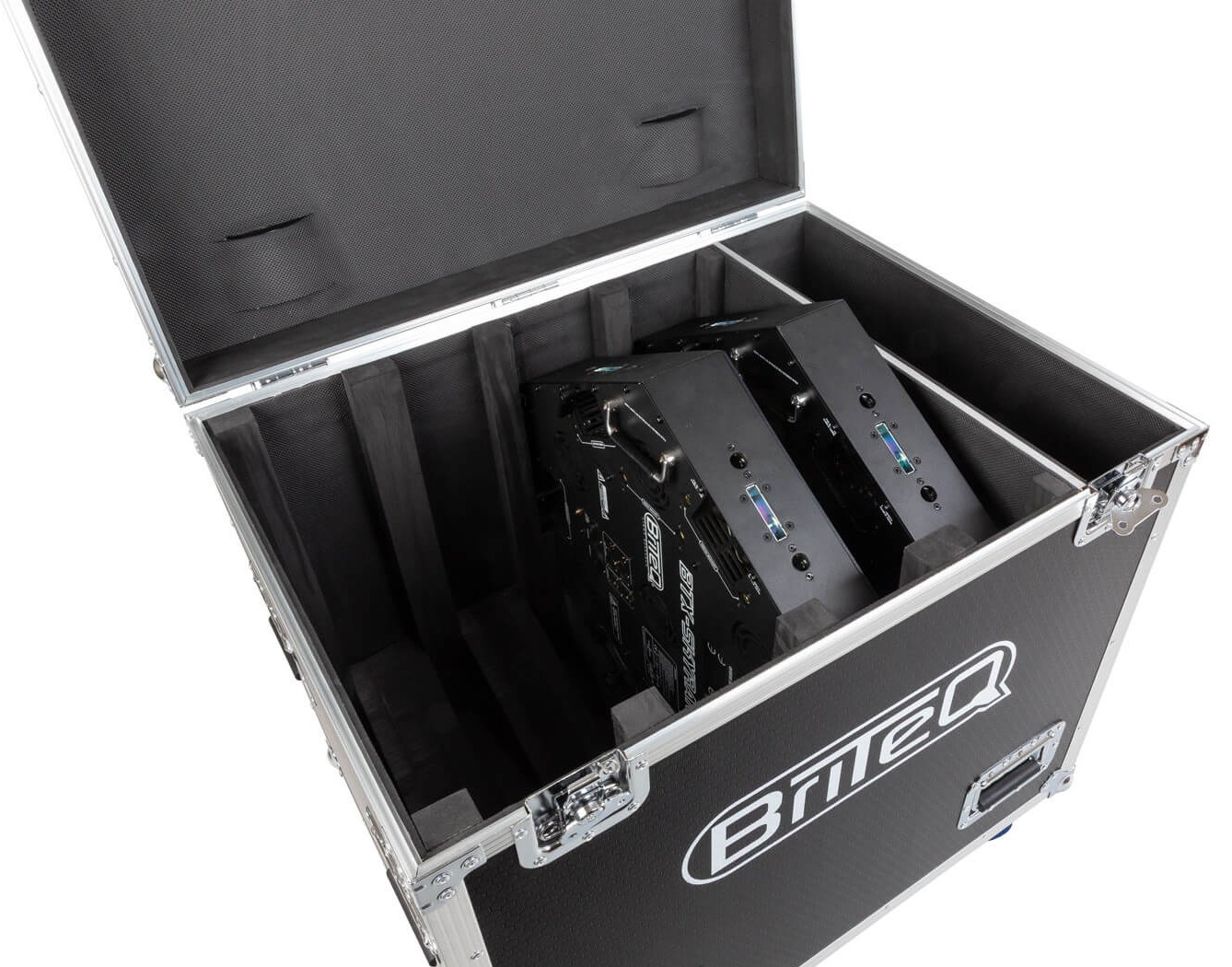 La protection repose sur une combinaison de structure extérieure et d’aménagement intérieur. Le flight case utilise un contreplaqué solide de 9 mm avec finition HEXA noire durable, complété par des coins renforcés pour une résistance accrue. À l’intérieur, une mousse de protection spécialement adaptée est prévue pour maintenir les appareils et limiter les effets des chocs pendant le déplacement. Les serrures papillon solides assurent la fermeture fiable du couvercle pendant la manutention. Dans un usage lumière professionnel, ce type de conception permet de réduire les risques liés aux transports répétés, aux chargements dans un camion et aux manipulations en préparation ou en fin de prestation.
