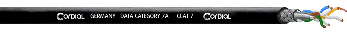 Le Cordial CCAT7A-100 bénéficie d’un blindage S/FTP (tresse de cuivre étamé + feuillet aluminium/polyester) garantissant une immunité maximale aux interférences électromagnétiques. Cette configuration en fait un choix optimal pour des environnements bruyants électriquement, typiques des installations audiovisuelles, broadcast ou informatiques critiques.