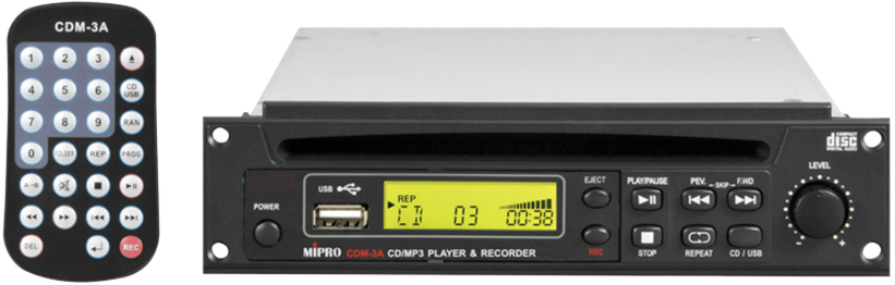 Le Mipro CDM3A est un lecteur CD multimédia conçu pour les systèmes de sonorisation portables autonomes. Il permet de lire des fichiers audio à partir de CD ou de clés USB, et d’enregistrer directement le signal audio issu de l’entrée Line de l’enceinte vers une clé USB. Ce lecteur/enregistreur est compatible avec les séries MA-I, MA-II et MA-505 de Mipro. Il propose des fonctions utiles comme la lecture aléatoire, la programmation des pistes, la gestion par dossier, ainsi qu’une fonction Repeat. Livré avec une télécommande infrarouge, il facilite le pilotage à distance. Son installation enfichable garantit une intégration simple et rapide. Un choix pertinent pour les discours, prestations musicales ou enregistrements nomades.