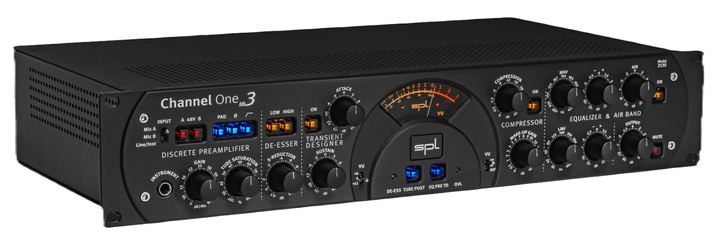Le SPL Channel One Mk3 est un préamplificateur haut de gamme conçu pour l’enregistrement vocal, instrumental ou line. Grâce à son gain élevé allant jusqu’à 68 dB, il gère efficacement les microphones exigeants. Ce channel strip intègre un préampli discret, une saturation à lampe, un Transient Designer SPL et un De-Esser auto-adaptatif, offrant un traitement audio analogique complet. La structure de traitement comprend également un égaliseur paramétrique, un compresseur intelligent à VCA double, et la gestion du signal via VU mètre. Avec ses entrées Mic A/B, ses réglages précis et ses sorties multiples, le Channel One Mk3 s’impose comme un choix professionnel pour voix-off, studio ou live. Il répond aux besoins des producteurs exigeants.